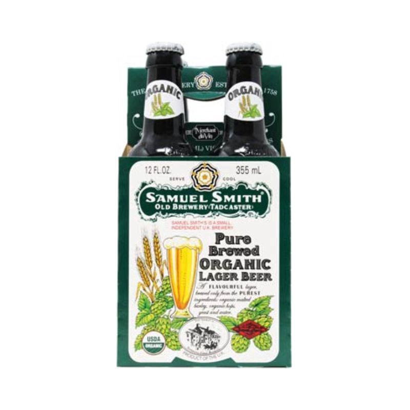 SAM SMITH Organic Lager 12 oz 4 Pack is a full-bodied lager with a good balance of malt and hop character. It is brewed with organic malted barley and organic hops, and has a slightly hoppier profile than many lagers.